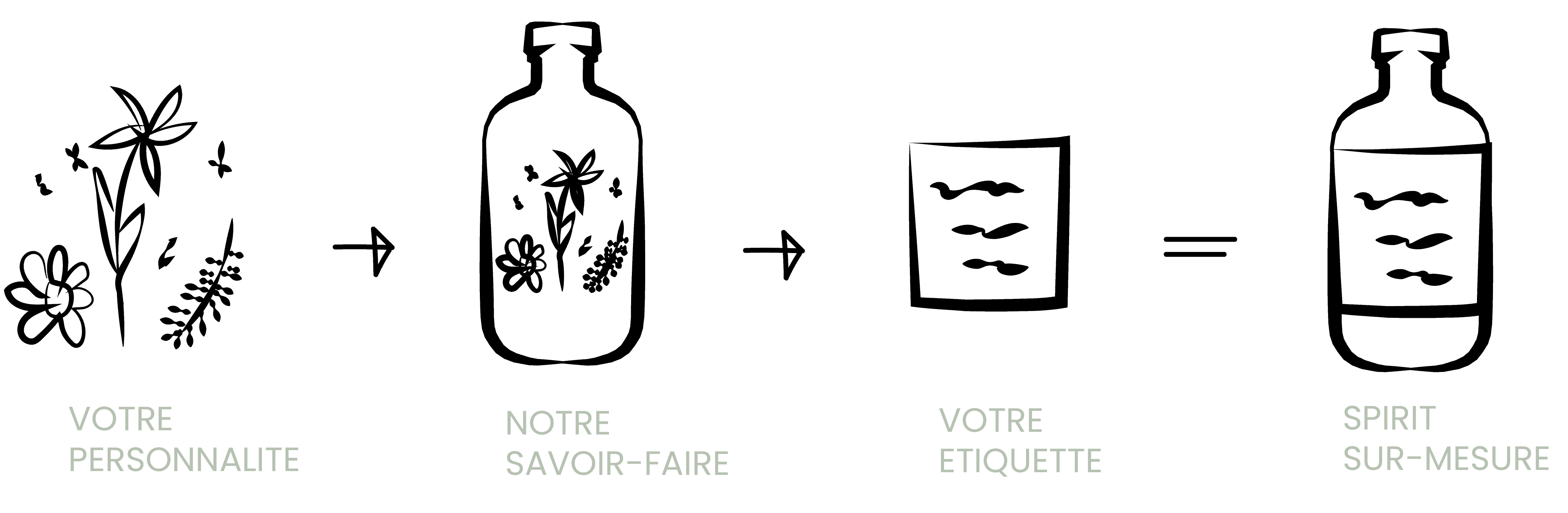 Nous créons le spiritueux de tes rêves selon tes envies et tes goûts. On va pas dire qu’on va réaliser tous tes rêves mais presque.
