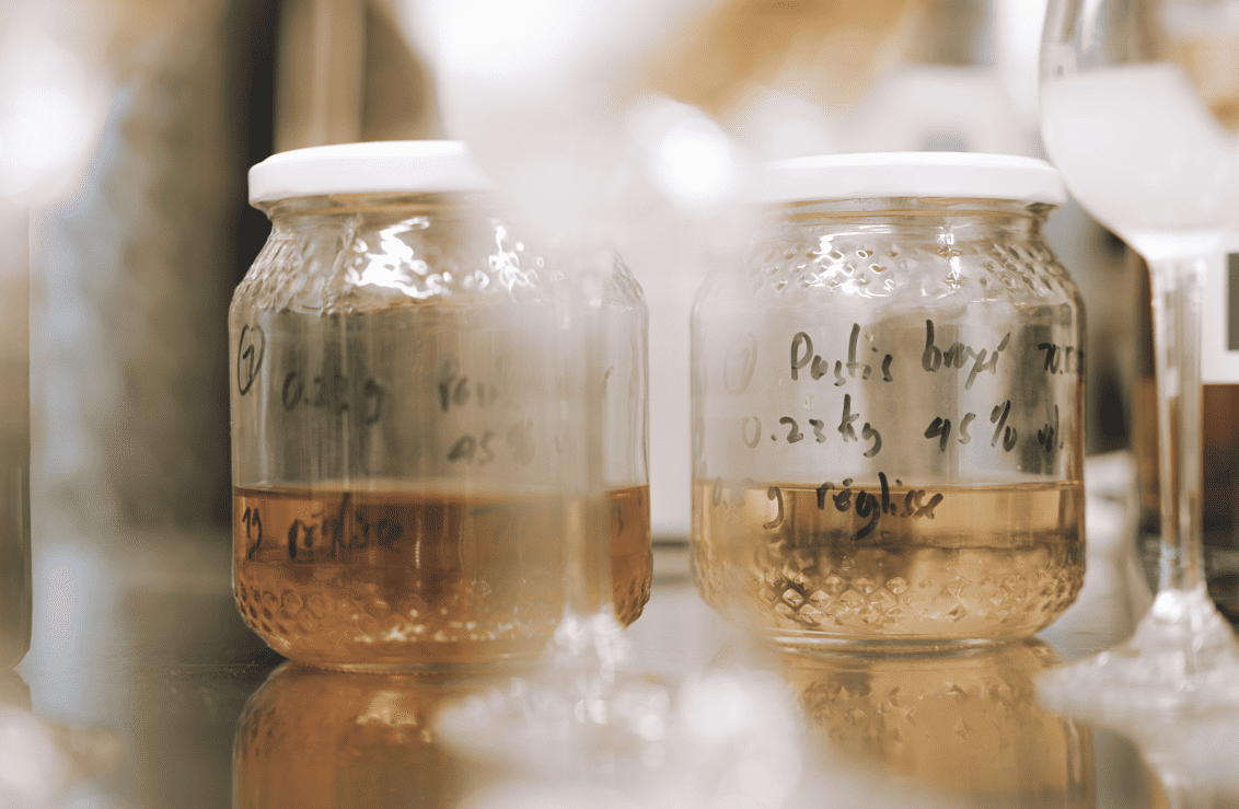 - Wir klären und filtern nicht (Aktivkohle, Milcheiweiß, Fischleim, Bentonit usw.): Natürlicher Schnaps ist ein lebendiges Getränk. Eine sanfte Filtration durch Schwerkraft und Partikelfilter kann angewendet werden, um Ablagerungen zu entfernen.