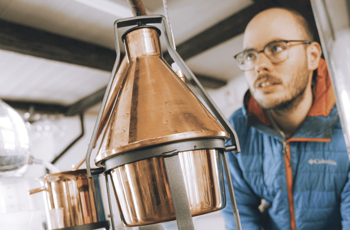 - Wir destillieren mit handgeführten Kupferbrennblasen (andere traditionelle natürliche Materialien können in Ordnung sein, wie z.B. Terrakotta für Mezcal).